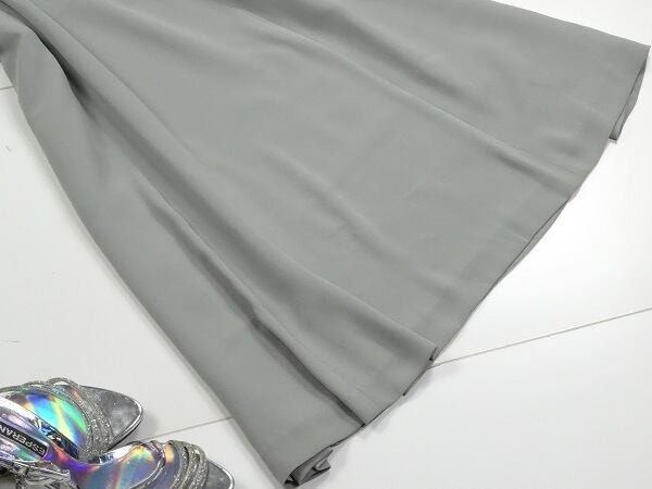 スタンダードミモレ丈のスカ-ト 。ウエストから裾にかけて緩やかなフレアに変わっていき、歩くたびにふんわりと揺れる裾が、上品な印象をあたえています。ウエストは左右がゴム仕様でサイズにすこしゆとりがあります。右ファスナー。裏地付。