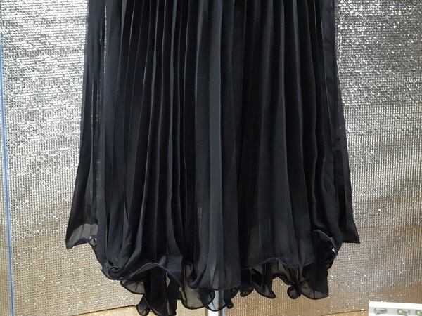 社交ダンスに最適なプリーツ仕立てのスカート。約1cm幅のプリーツは動きに合わせて綺麗に広がります。華やかで上品な印象をあたえています。ウエストは総ゴム仕様でサイズにゆとりがあります。裏地なし。ファスナ-なし。
