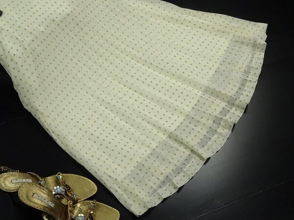 水玉の綺麗なシフォンプリ-ツスカ-トです。歩く度に揺れる裾がとても女性らしいスカ-トです。裏地付。サイドファスナ-有。