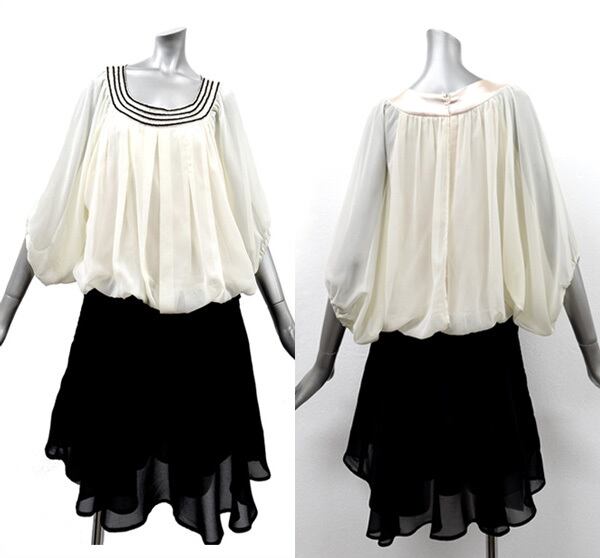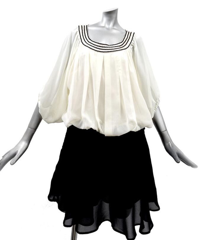 ウエスト切替ビーズ飾りツ-トンカラ-ワンピースです。ふんわりとした優しく上品なイメージを与えてくれます。襟は丸襟で四重のビーズ飾りが素敵です。袖は軽いふんわりドルマンスリ-ブです。裏地付。背中ファスナ-有。