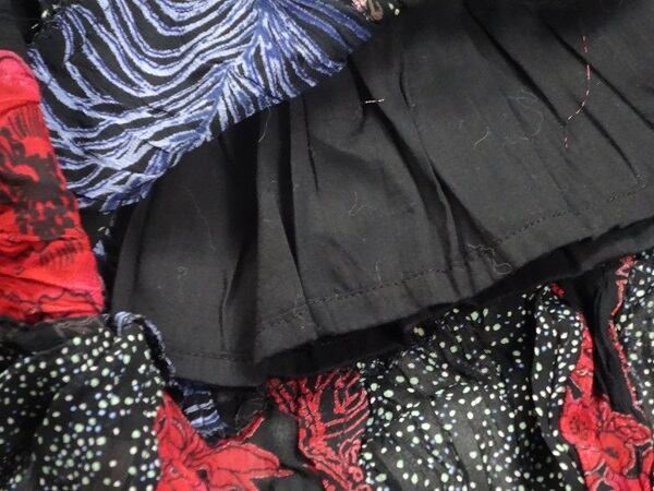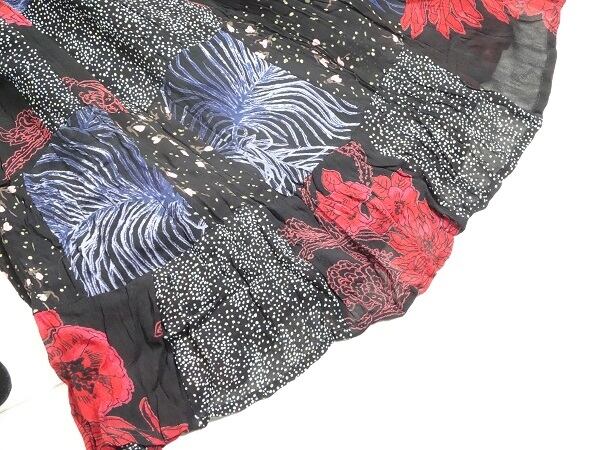 切替しMIX柄のキャミワンピース。胸元はカシュクール風。大小のドットや、花柄などPOPな柄をMIX。胸元とスカート部分に切替しが入り、ふんわりやさしい印象です。ファスナーなしのかぶるタイプ。肩紐は調整不可。裏地有。