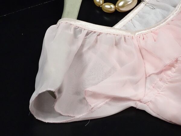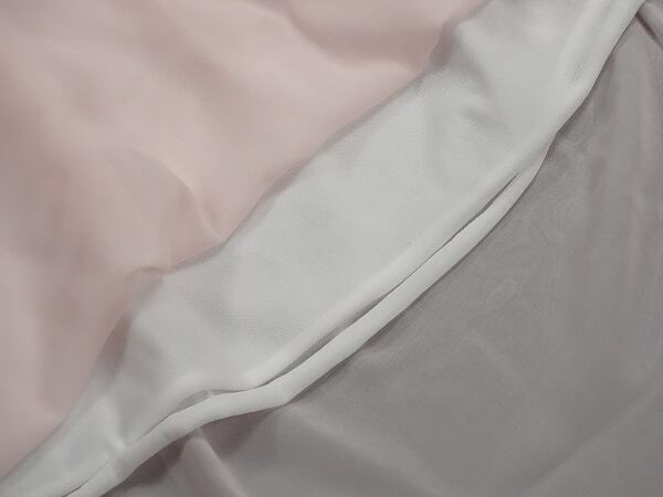 胸元フリルピンクシフォンのワンピ-ス。優しいピンクのシフォン地をたっぷり使用。胸元のフリルがキュートでフェミニン。黒のサテンのリボンベルトをきゅっとしめると甘さの中にきりっとひきしまった印象を与えてくれています。パーティやイベントなど、どんなシーンにも活躍してくれます。サイドファスナー。裏地あり。